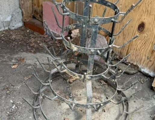 Long before dishwashers or disposable packaging, glass bottles were washed by hand and placed upside down to dry. The rack’s upward-tilted hooks, forged from sturdy iron or steel, held them in place, letting water drain naturally while air did the rest. Practicality gave it purpose; repetition gave it grace. What began as a tool became a kind of sculpture of daily life — functional, balanced, quietly beautiful.